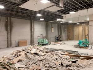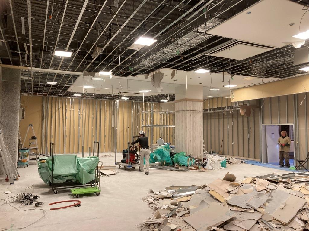 解体3日目の本日は、壁面や天井面の石こうボードをひたすら解体していきます。