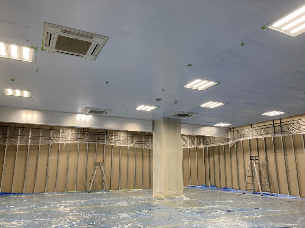 本日から天井の塗装工事を行っていきます。