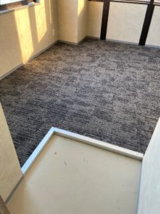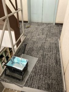エレベーター前のタイルカーペット敷設完了。