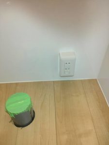 外部コンセントを分岐して排水配管と一緒に床下に配線し、