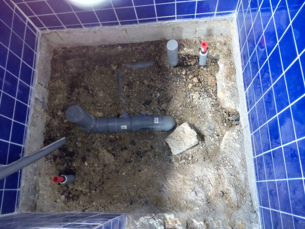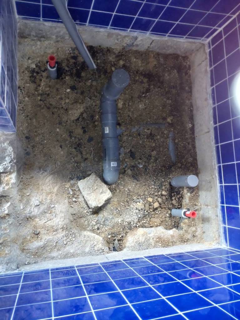 解体および掘削が完了しましたので、本日は給排水配管のやり直しを行います。