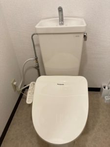 夕方には甲賀市水口町内の賃貸マンションにて温水洗浄便座の交換工事を行いました。