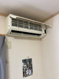 本日は朝から、甲賀市内のアパートにてエアコンとドアホンの交換工事です。