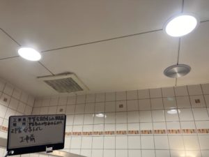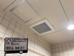本日は朝から、甲賀市内の合同庁舎にてトイレの換気扇交換と点検口設置工事です。