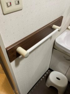 壁下地を狙って下地板を設置し、そこにタオル掛けを設置しました。