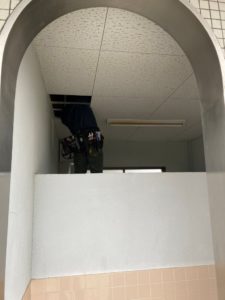 トイレ内に電源がありませんので、天井のジプトーンを外して