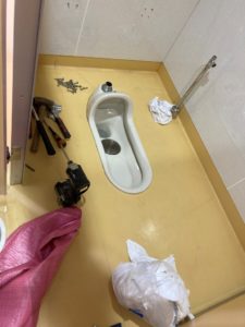 男女2か所の和式便器を洋式化する工事ですが、