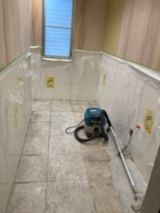 本日は男子トイレの残りの部分を貼っていきます。