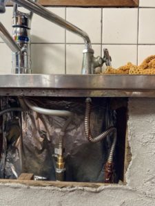 フレキホースで水栓まで接続し直しました。ついでに水栓も新しくなりました。