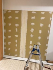 本日は昨日造作した壁面にクロスを貼っていきます。