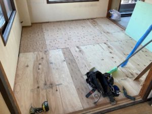 本日はもともと和室の部屋にフローリングを敷設するための下地造作を行いました。