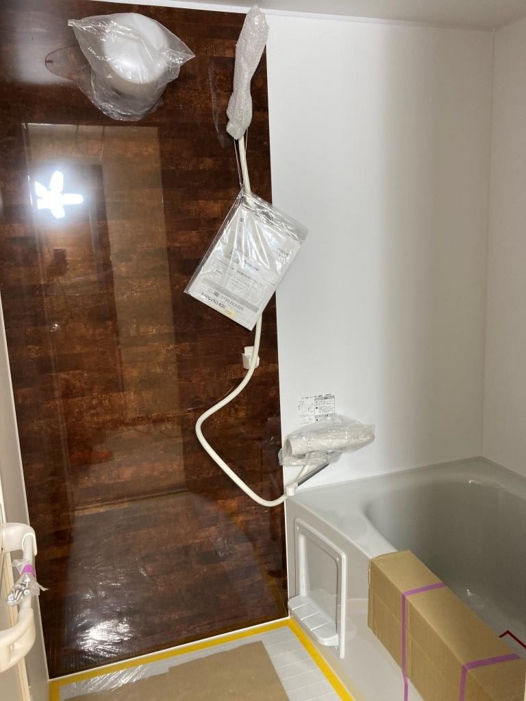 甲賀市水口町内アパート原状回復工事(浴室設置) 2025.12.08本日は朝から、甲賀市水口町内のアパート原状回復工事現場にて新しい浴室の設置を行っていきます。朝から職人さんと打ち合わせして、設置場所などを確認しました。無事設置完了。ワンポイントのアクセントパネルがいい感じになっています(^^♪2人で作業いただいたので午前中に工事が完了。午後からは事務所にて見積書の作成などを行っていました。本日はここまで。滋賀県、甲賀市のリフォーム・リノベーション・原状回復工事は当社まで!