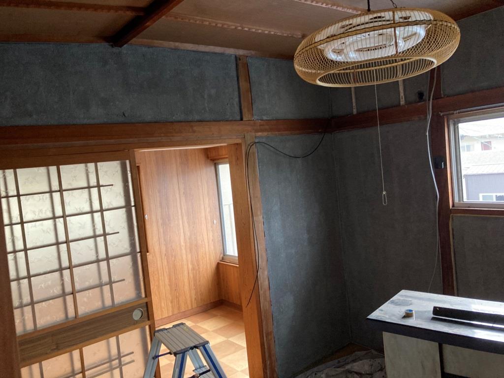 午後からは甲賀市水口町内の貸家改装工事現場にて、各工事の続きです。