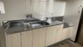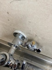 倉庫の流し台水栓に浄水器を接続するために分岐アダプター等を設置していきます。