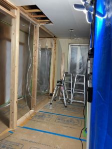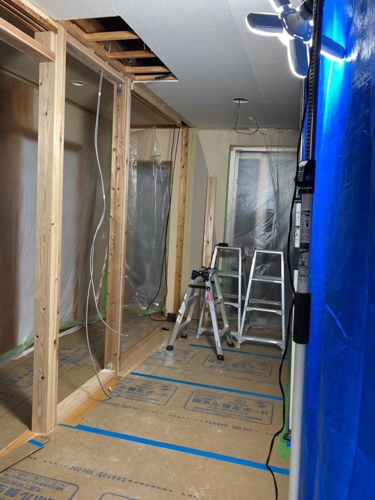 養生から壁面解体、電気配線の延長などをさせていただきました。