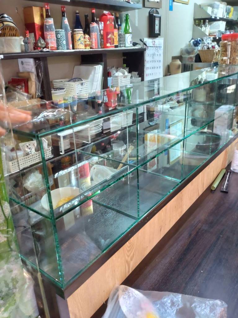 本日は朝から、草津市内のテナントにてカウンターにガラスケースを設置しました。