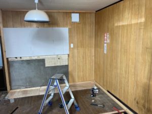 本日は午前中、甲賀市水口町内の貸家改装工事現場にて工事の続きです。