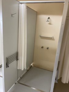 最終日となる本日は、シャワーブースにフックおよび棚の取り付けや