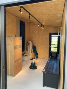 内部壁面は断熱材+OSB合板でログハウスのような雰囲気になりました。