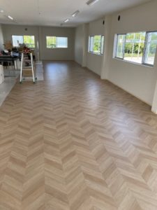 ヘリンボーン調クッションフロア貼り完了です。