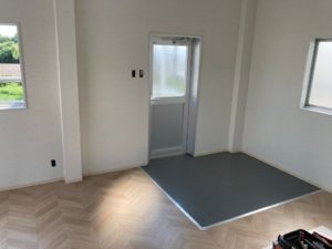 入口周りもクロス貼り、靴脱ぎ場の長尺シート貼り、見切設置完了です。